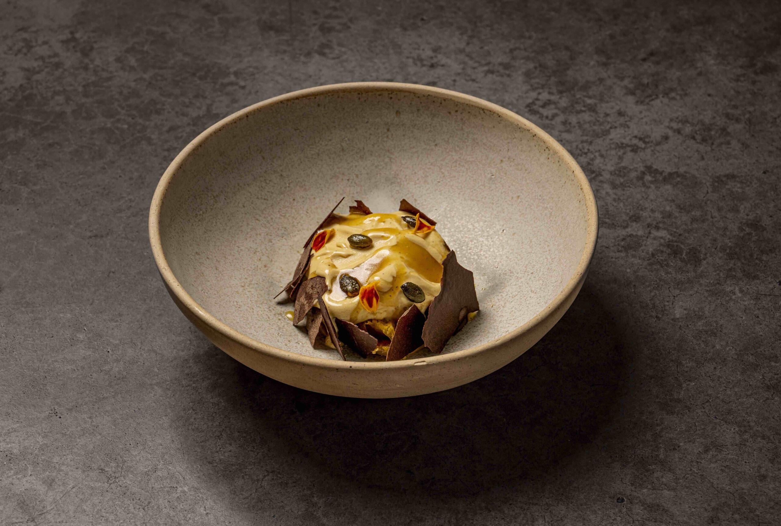 Una cocina personal, sencilla en apariencia, pero complicada en su elaboración. En su elegante propuesta gastronómica se emplean técnicas innovadoras que no se ven, pero se perciben en el paladar.