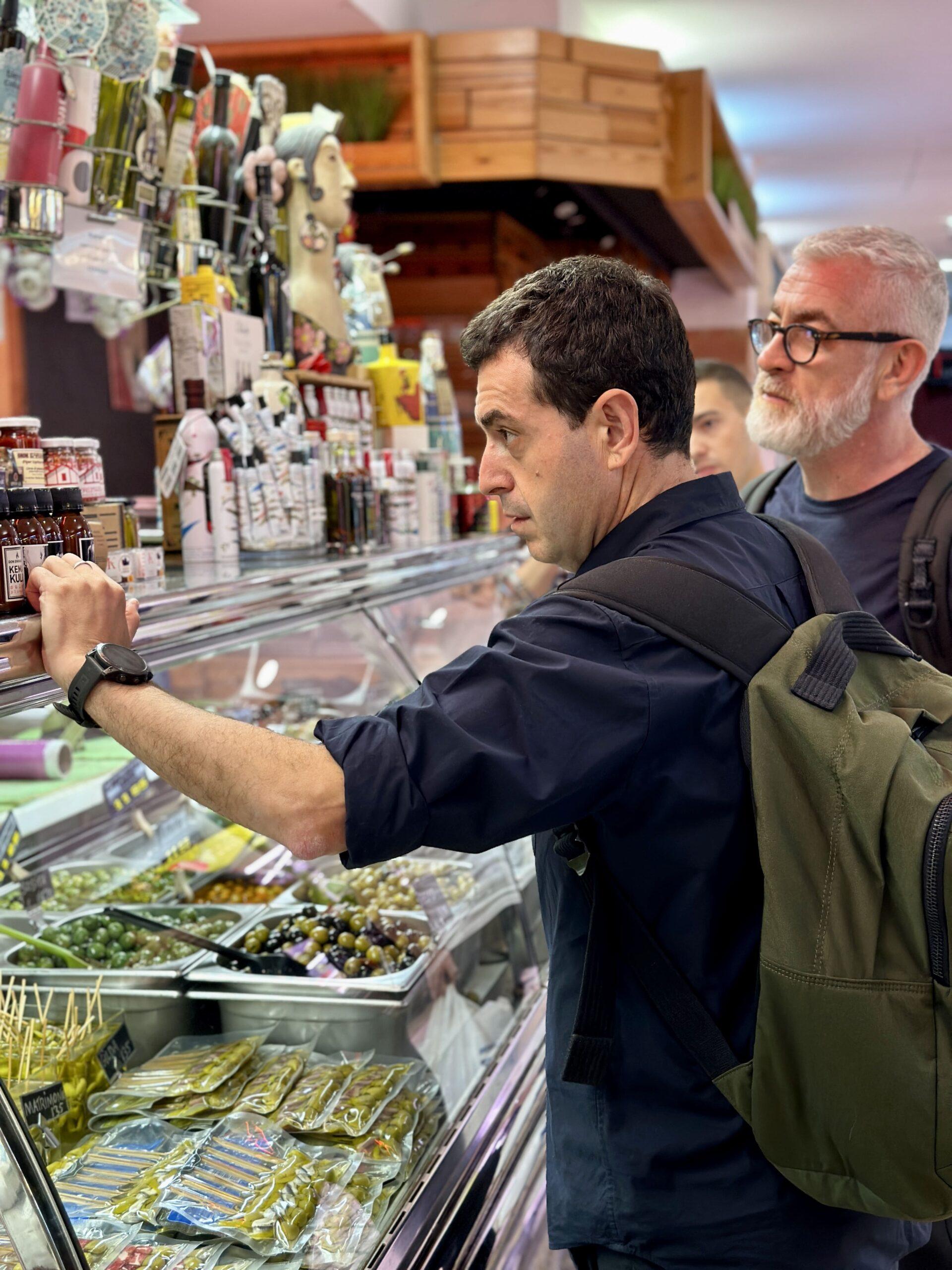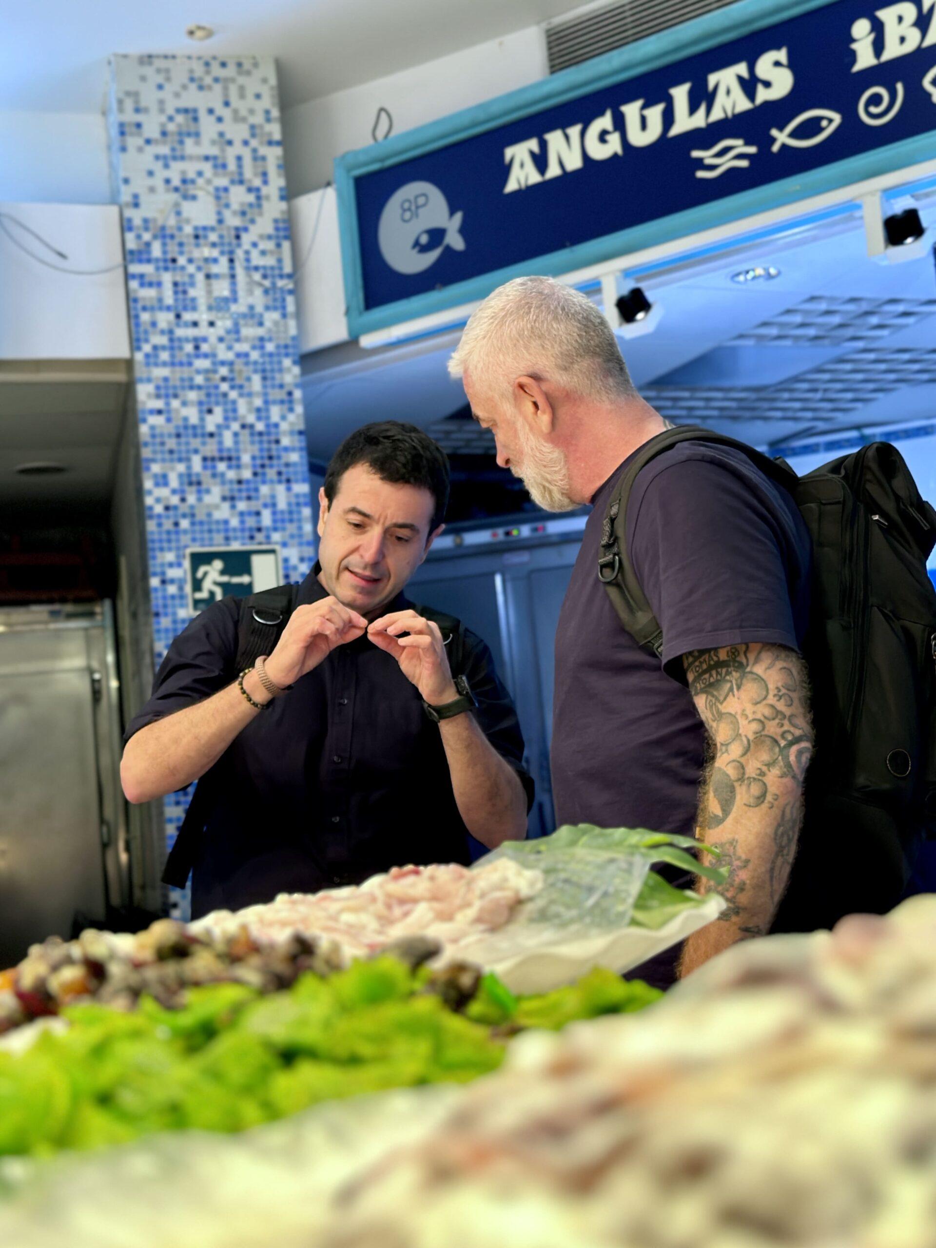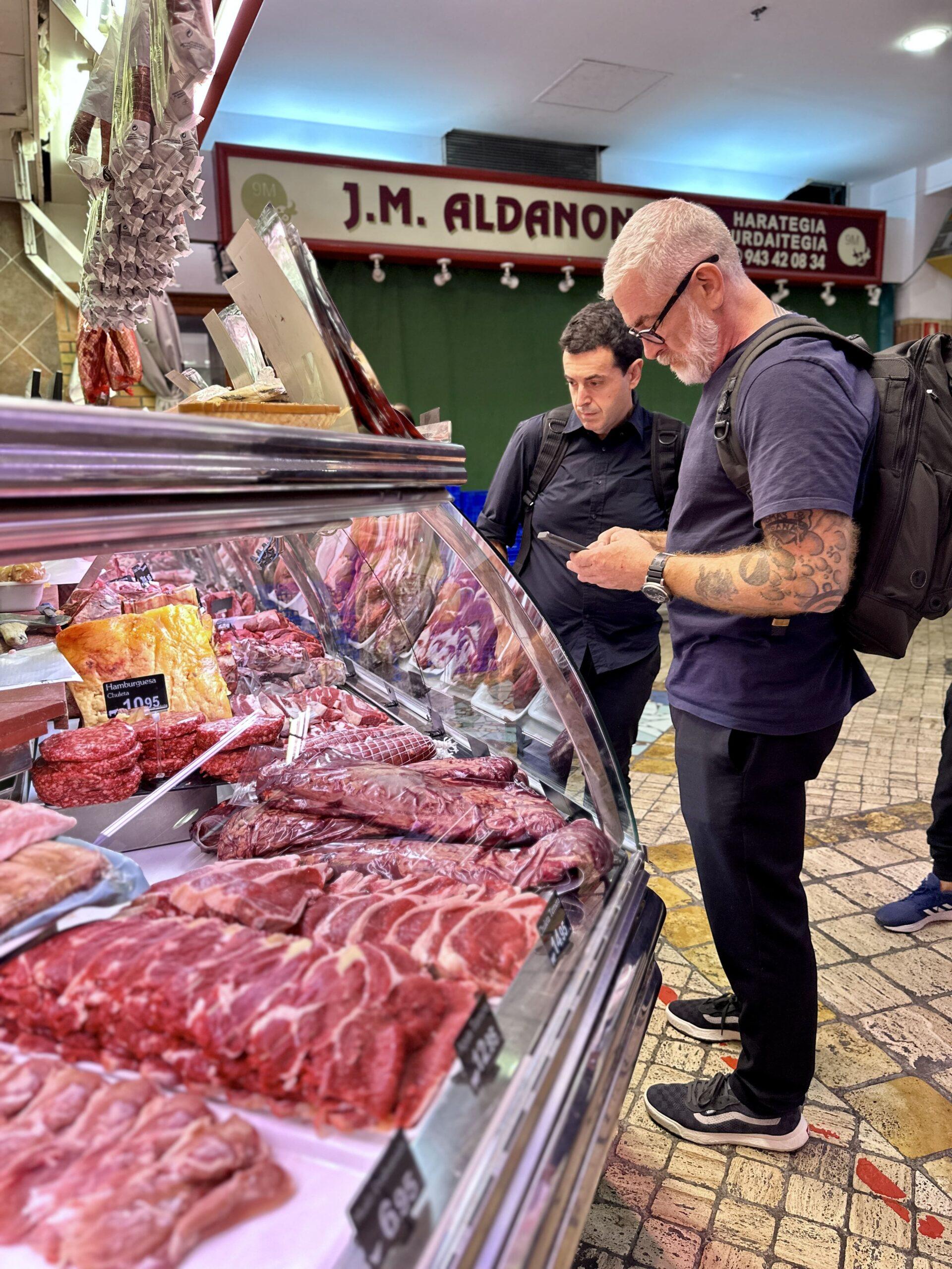 Ambos cocineros se citaron este martes en el ‘Mercado de la Bretxa’, de San Sebastián, para comprar todos los productos con los que elaborar el menú que han mostrado en la ponencia. Tras recorrer todo el mercado compraron pescado, marisco, chuleta, verduras, frutas, etc… que les han servido de inspiración para confeccionar los platos este miércoles.